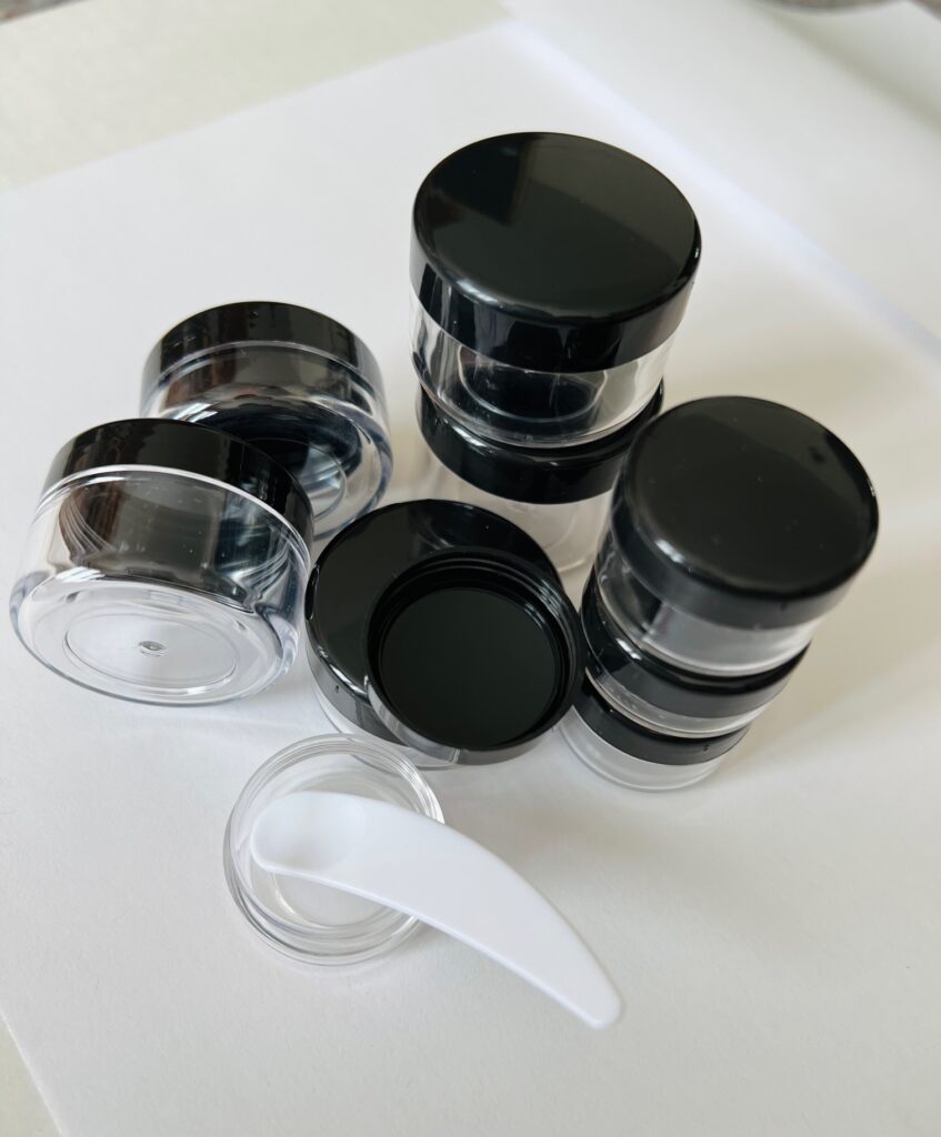 10-piece set of small jars are perfect to fill with your must have creams, lotions, serums, or hair gel or hair care you want to bring on your vacation. I’ve used these jars numerous times on trips. They come in a variety of sizes.